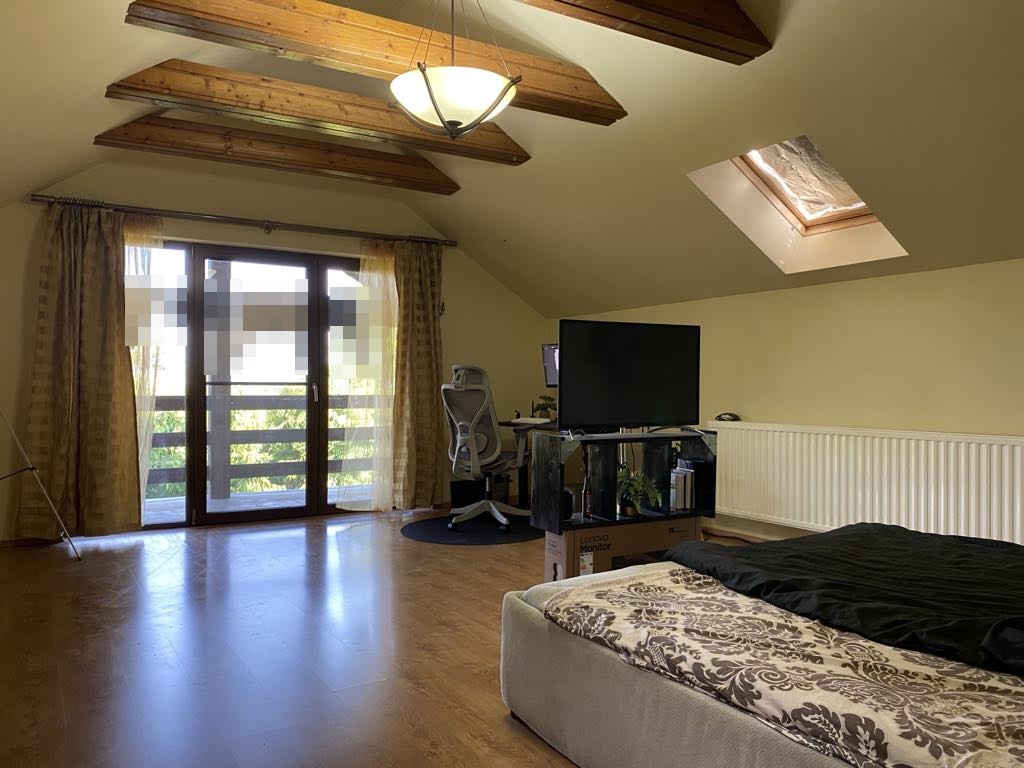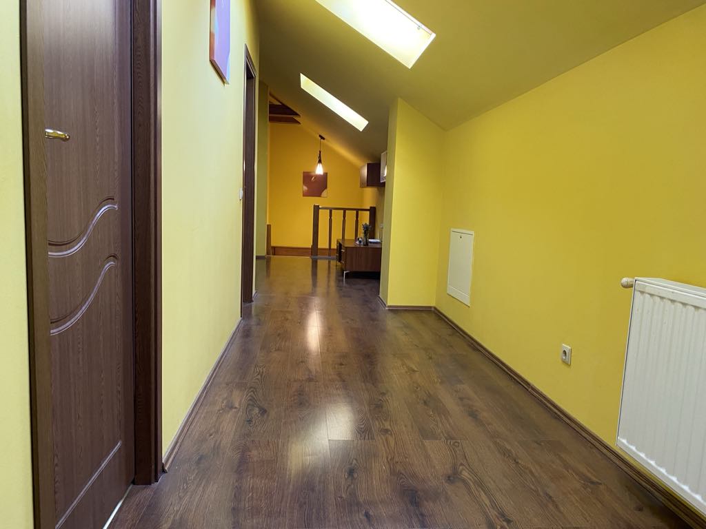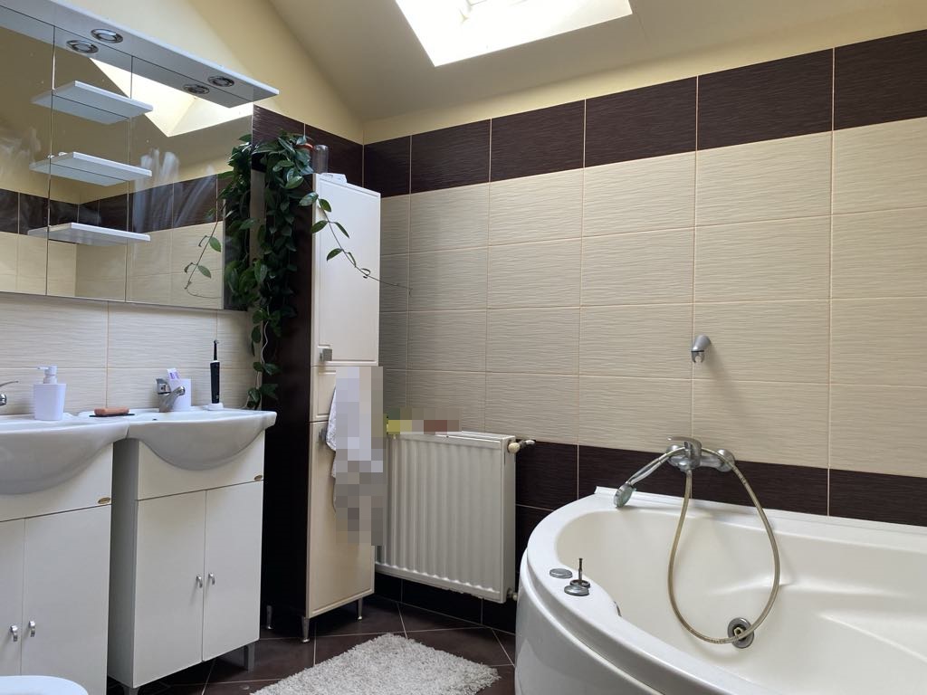 Este compusa la parter din bucatarie, living, baie, hol, magazie, garaj dublu iar la etaj se afla 3 dormitoare, baie, 2 terase.garderoba, hol.