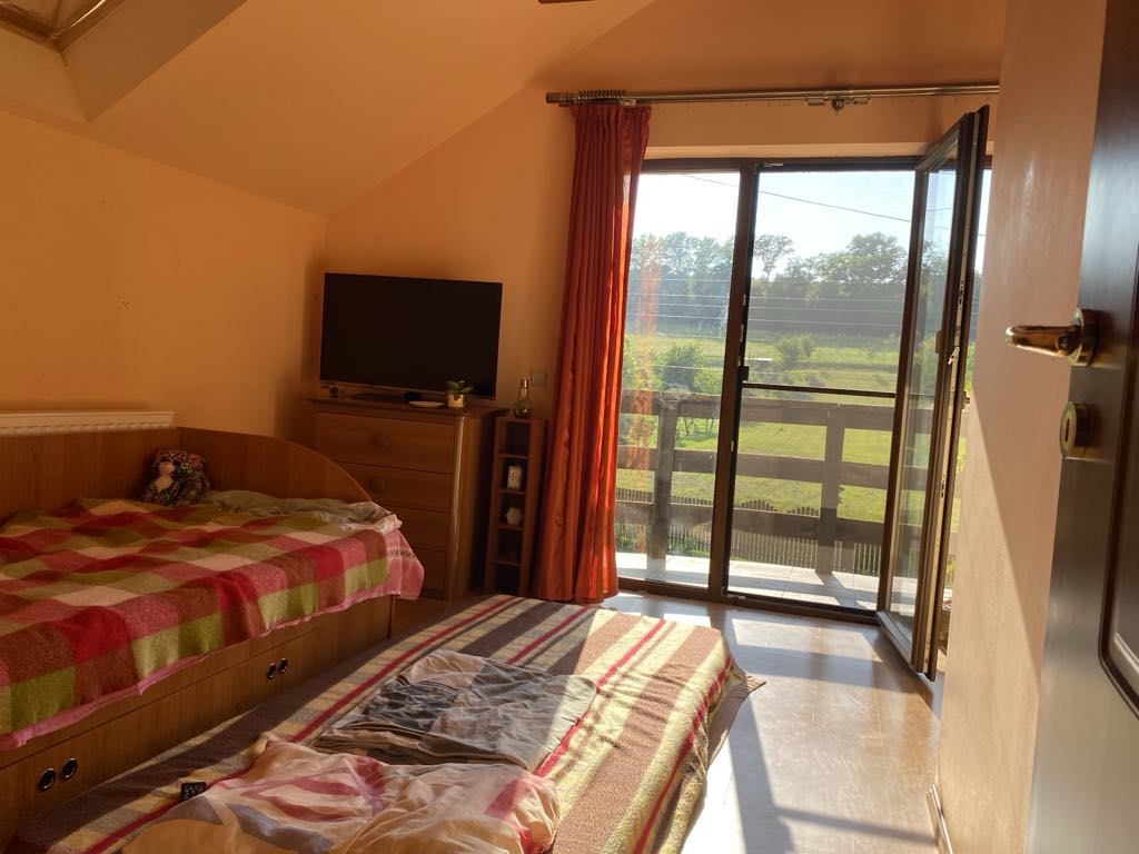 Dotarea este cu centrala termica, gresie, faianta, geamuri termopan, usa de lemn, parchet, izolatie exterioara.