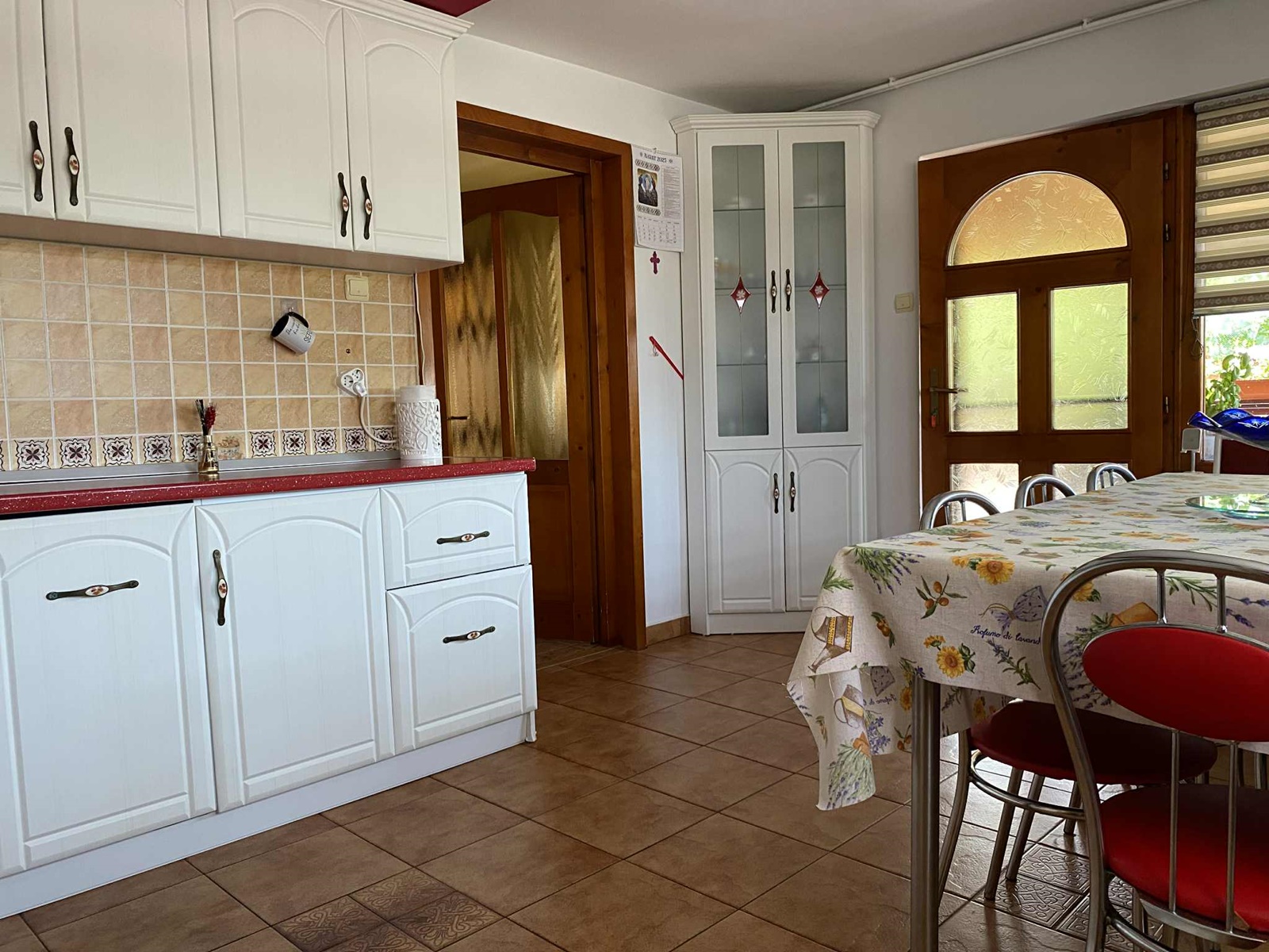 Este compusa la parter din bucatarie, baie, living, 2 camere, garaj, pivnita, bucatarie de vara ,terasa mare iar la etaj se afla 3 camere, bucatarie, baie, 2 balcoane, scara interioara.