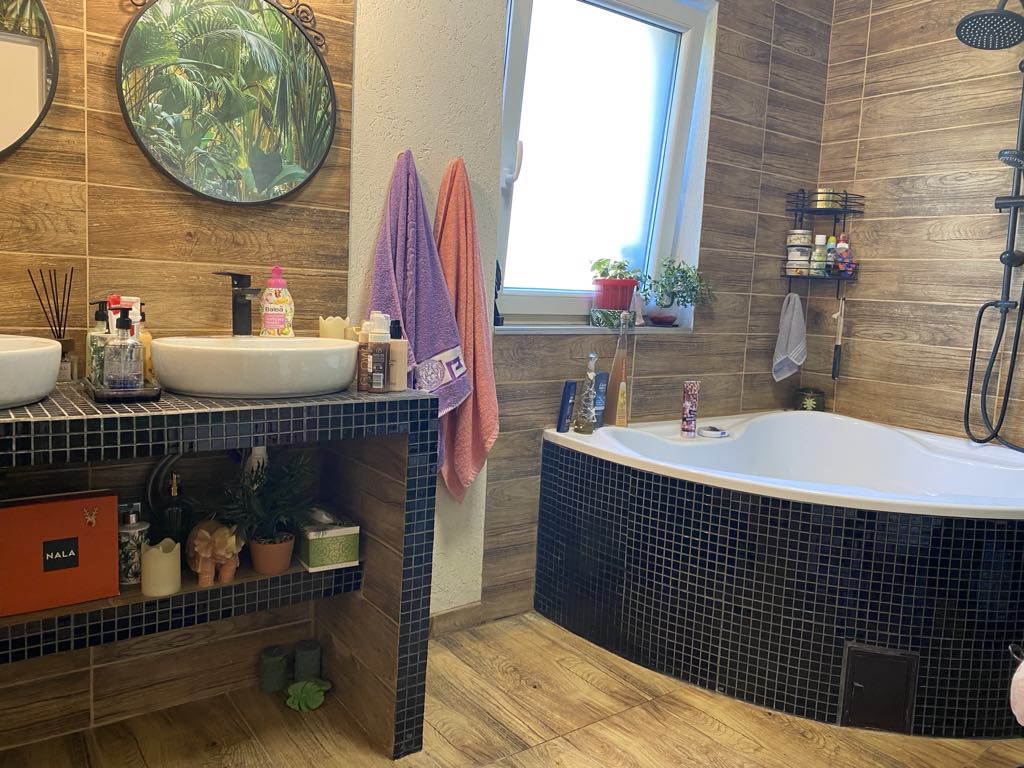 La parter se afla un living mare, bucatarie open space, baie, debara, camara si terasa iar la etaj se afla 3 dormitoare si o baie mare plus balcon.