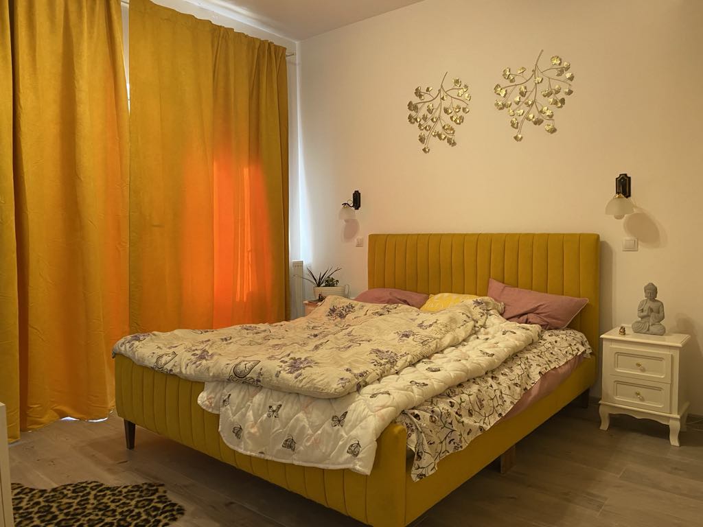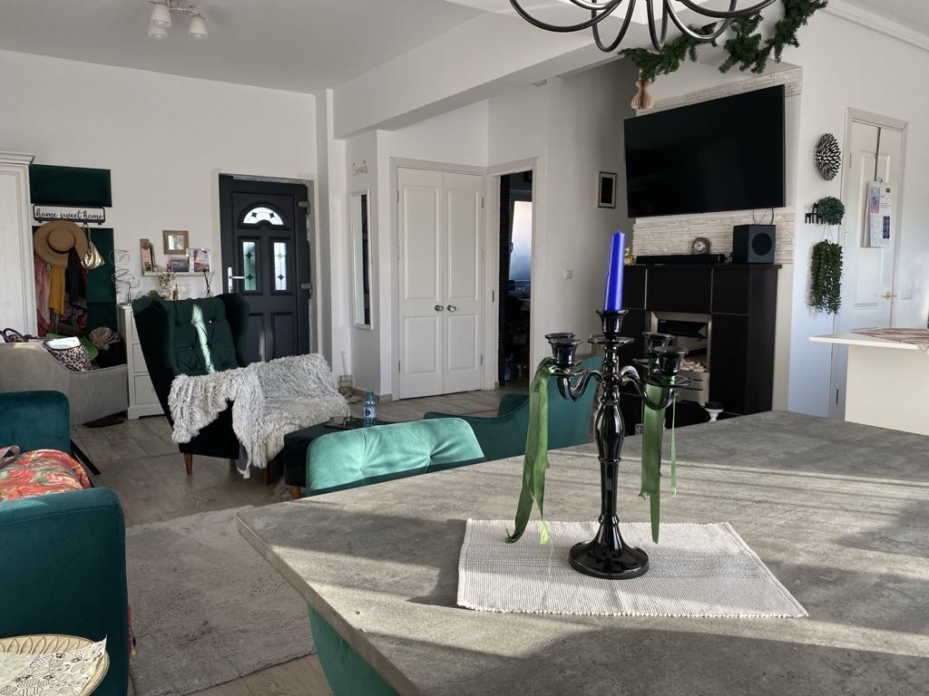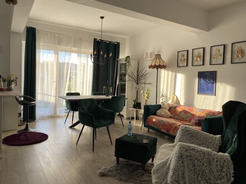 Dotarea este cu centrala termica, gresie,faianta, geamuri termopan, usa metalica,semineu electric, parchet laminat,izolatie exterioara,usi interioare, se vinde mobilat si utilat aproape in totalitate.